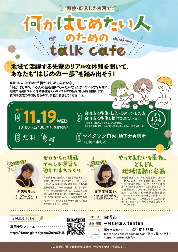 【参加者募集】2025.11.19(水) 移住・転入した白河で 何かはじめたい人のためのtalk cafe