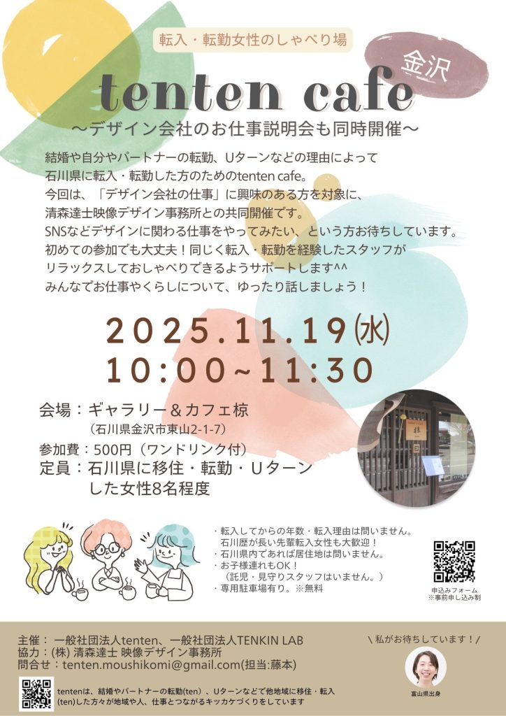 【参加者募集】2025.11.19(水)出張tenten cafe@石川県金沢市~デザイン会社のお仕事説明会同時開催~(TENKIN-LAB共催)