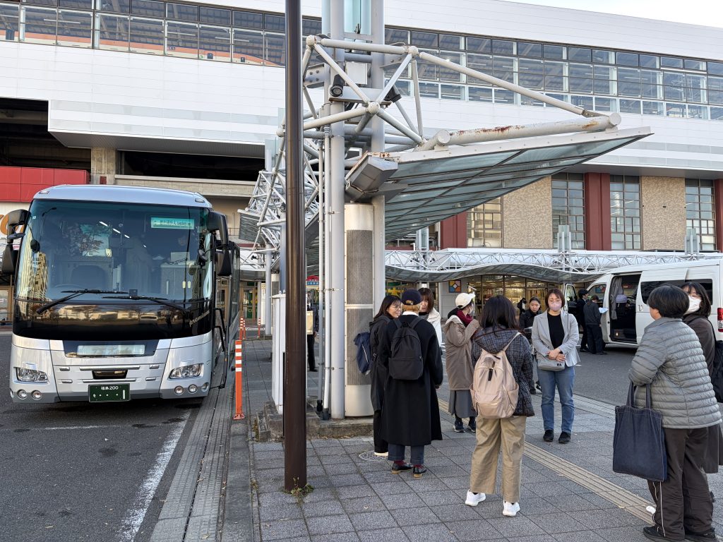 福島駅西口からバスで富岡町にある廃炉資料館へ出発。 福島県立医科大学の大葉先生にもバスに同乗していただき、 車内で「放射線の基礎知識」講座を行っていただきました。 放射性物質、放射線、放射能とは何かという基本的なことから、分かりやすく教えていただき、クイズや質疑応答を交えながら、放射線でがんのリスクが高まる理由や、福島の子どもに甲状腺がんが多いという噂の真偽なども 分かりやすく教えていただきました。甲状腺がんはもともと症状を出さないことが多く、積極的に検査を行った福島では”見つかりやすい”という背景があることも学びました。また、話題の処理水についても、従来は「運転していない原発からの処理水」の放出にルールがなかったことや、IAEAの評価がある一方で社会の理解が追いついていない現状、そして海外の稼働中の原発では福島の処理水よりも高濃度の放射性物質を含む処理水が放出されているにもかかわらず、福島だけが大きく取り上げられている現状など、ニュースだけでは分からない情報を知ることができました。