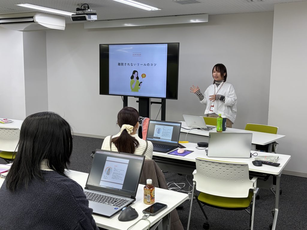 今年は昨年のセミナー受講生だった2名にもアシスタントとして、受講生のサポートに毎回入っていただきました。仕事として投稿の作成やリール動画の作成をしている彼女たちが、受講生にとっても身近な先輩・ロールモデルとなってくれました。