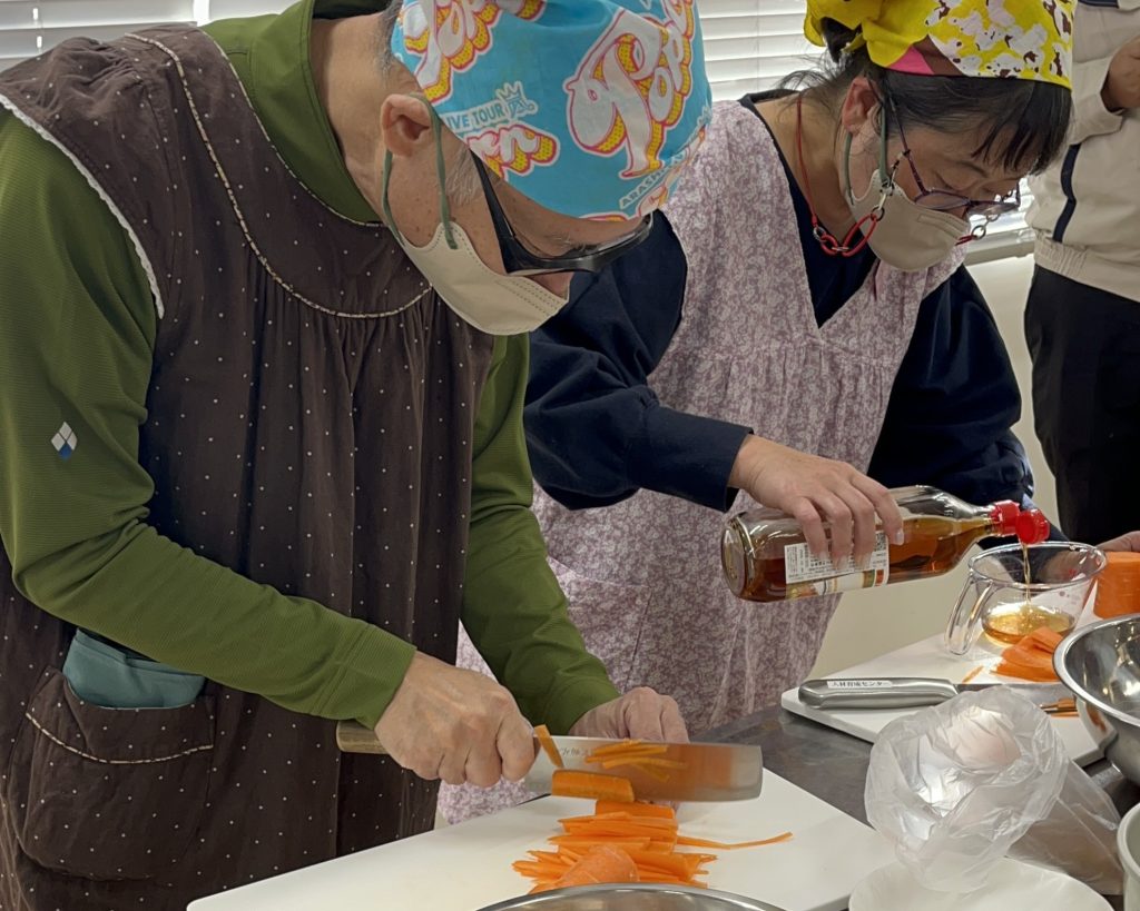 簡単な作業のおかげで、人参を切りながら参加者同士のお喋りが弾み交流が深まっていました。