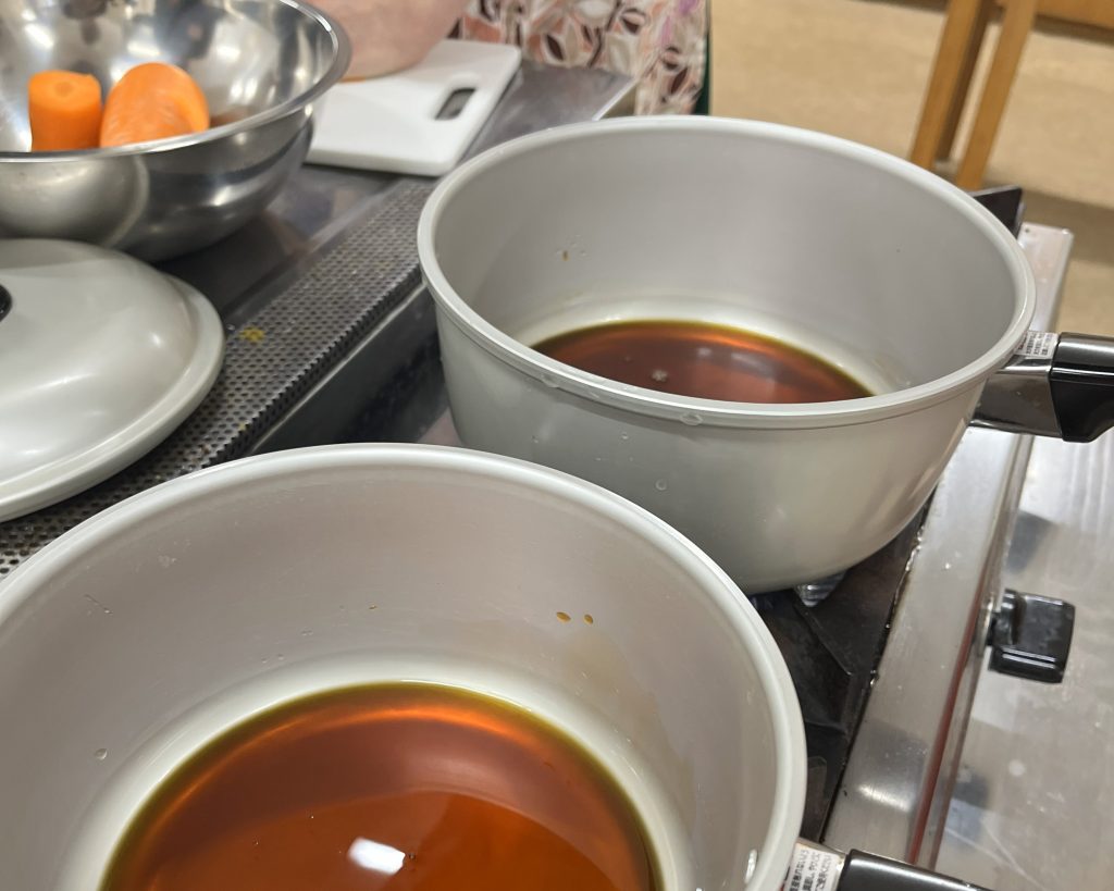 人参の切り方にも個性がでていて、とても几帳面に一定の細さに切る方、大胆に太めに切る方、色々なサイズ感の方まで、人参の切り方だけでも話が盛り上がりました。