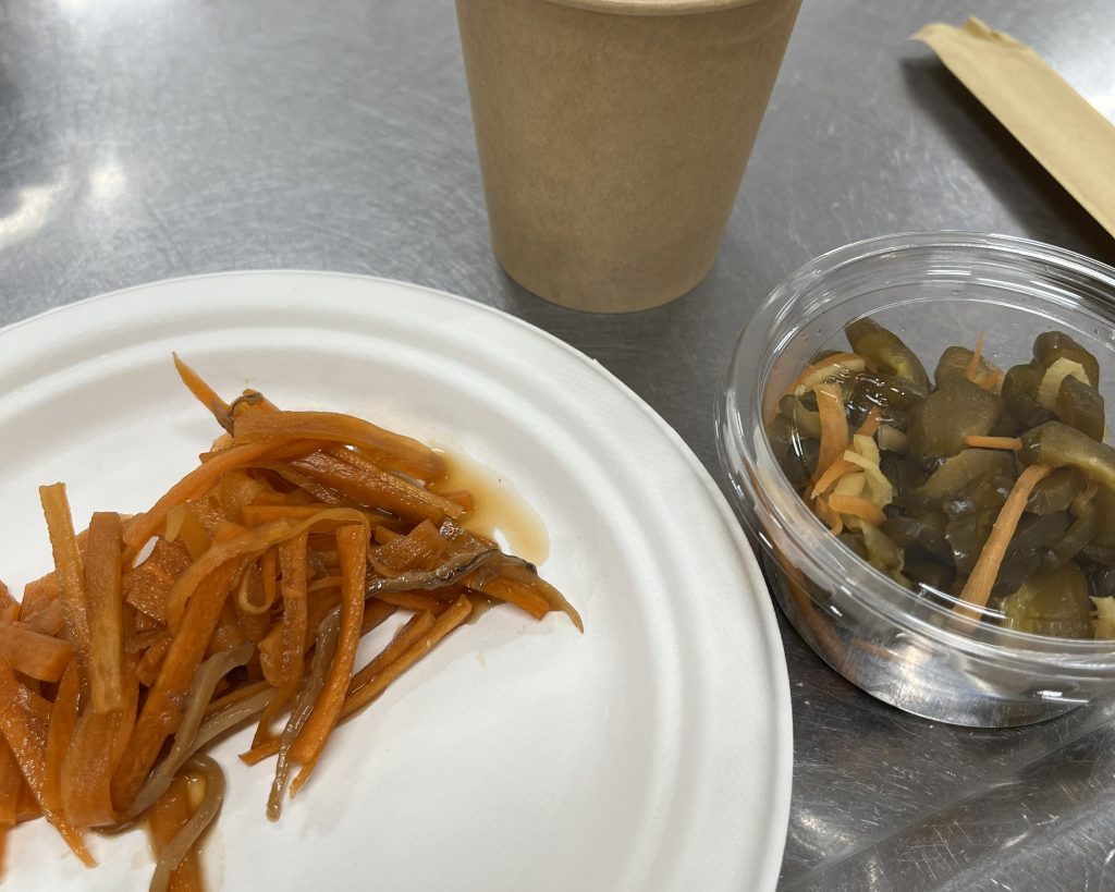 ワークショップで作ったいかにんじんは一晩寝かせると味が染みて美味しく食べられるとのことで、講師のみなさんが前日に作っておいてくださったいかにんじんと、きゅうりの漬物も試食させていただきました。