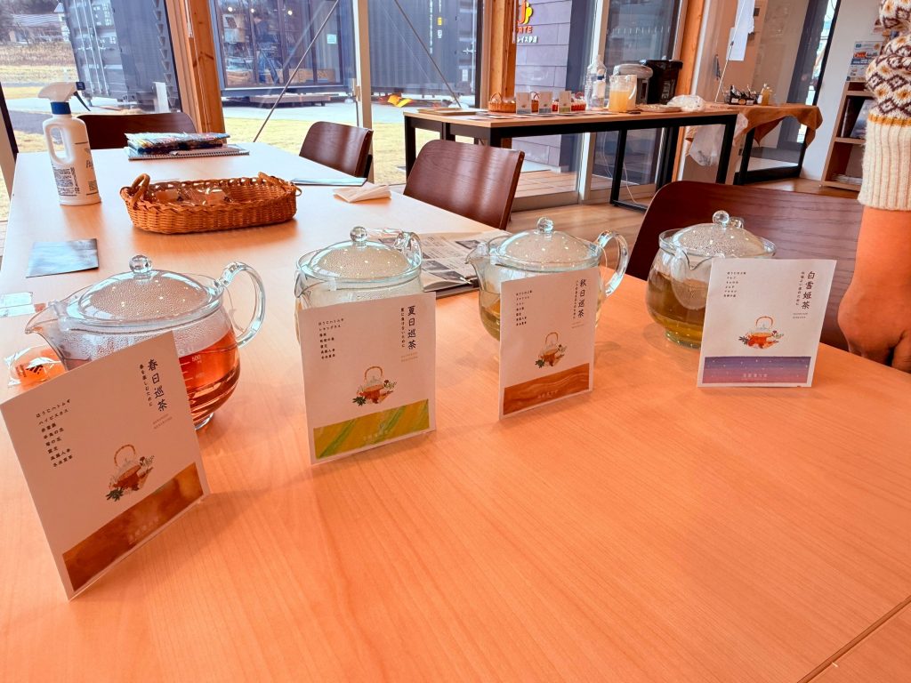 市内梁川町にある「港屋漢方堂」さんのパッケージデザインも素敵な漢方茶です。一つ一つ色や香り、味の違いを楽しみながら飲み比べをしました。みなさん「意外と飲みやすい!」という声が多く出ていましたね。