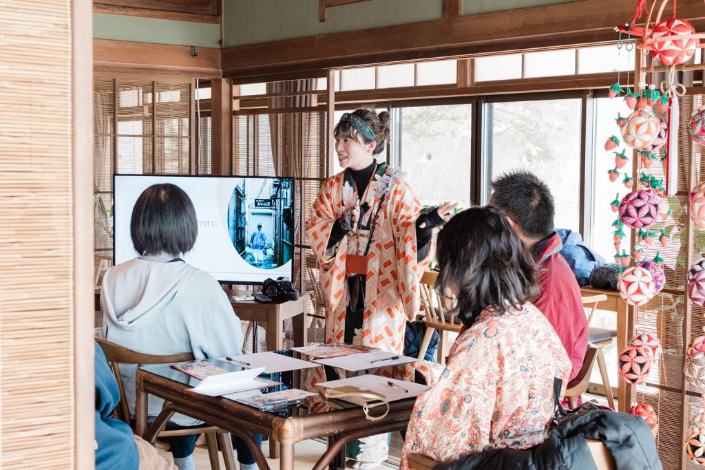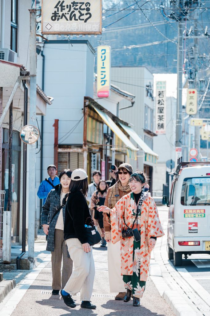 フォトウォークのガイドは川俣町在住のフォトグラファー 古関マナミさん(猪苗代町出身https://www.instagram.com/tokimeki_photographer/)です。地域の人とのつながりも深く、川俣の“魅力”を伝えてくれるキーパーソン。まちの背景やエピソードを交えながら、フォトスポットへと導いてくれました。